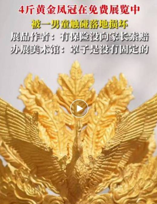 12月13日,千万网红@我是张凯毅 发布一则视频,称4斤黄金凤冠在免费展览中被男童触碰掉落损坏,引发关注。